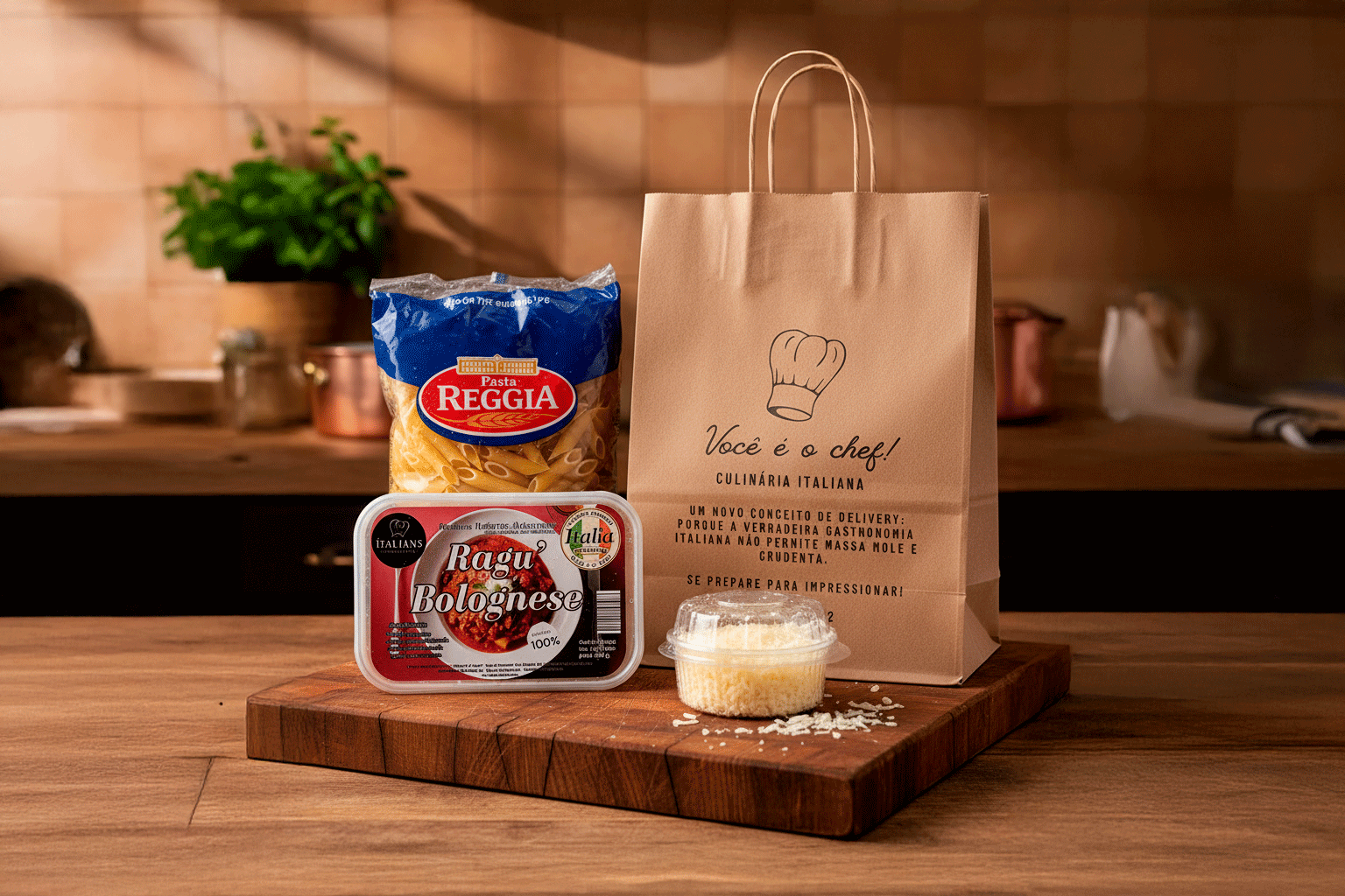 Queremos que você seja o chef da sua própria experiência italiana. Por isso, nossos kits vêm prontos: molho artesanal, massa importada, parmesão ralado e tudo separado para você montar um jantar digno de uma cantina napolitana em poucos minutos.